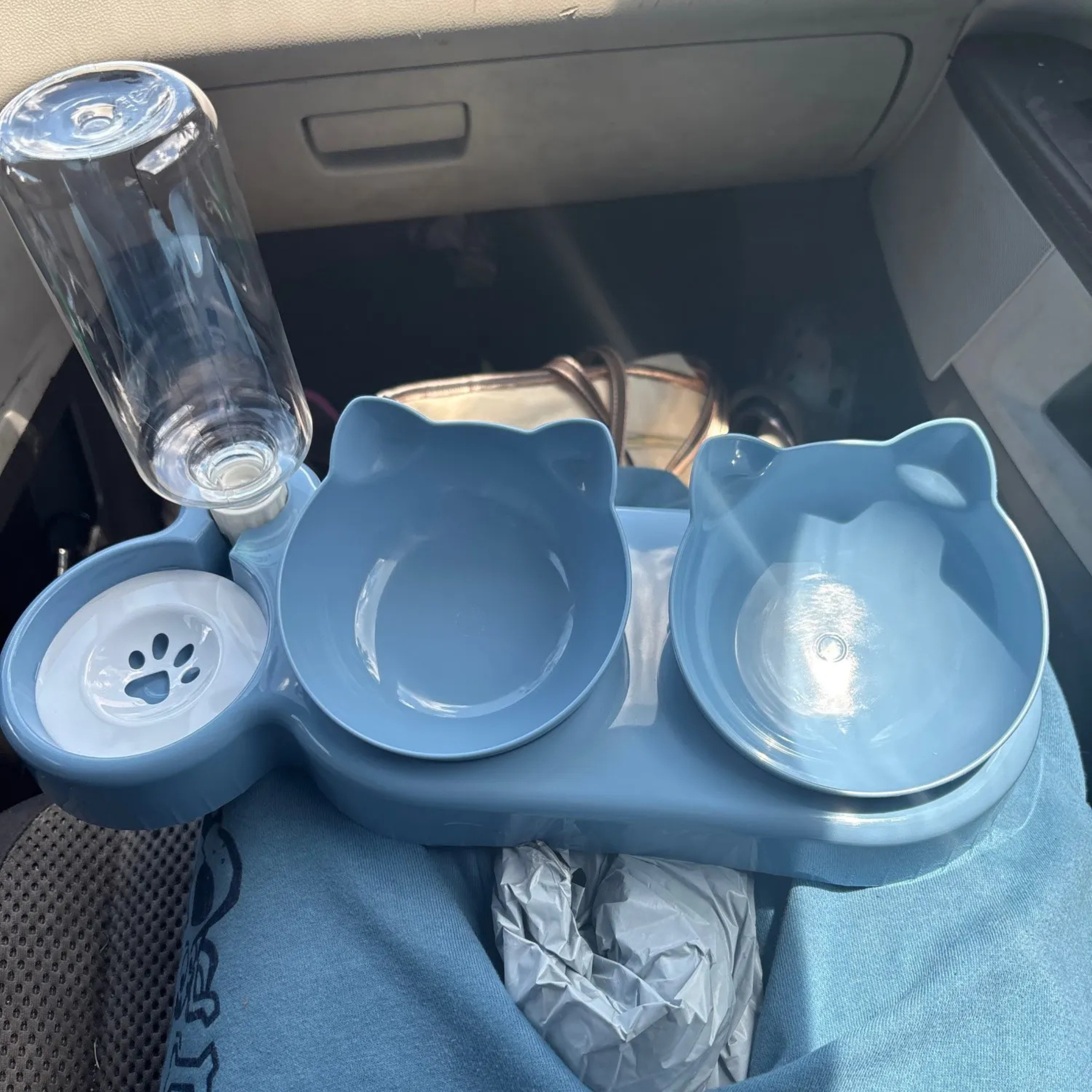 3-in-1 Food & Water Bowl - Tilted Design for Comfort